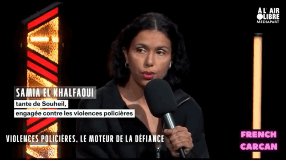 Encouragée par son auditoire, la militante n’en est pas restée là et a poursuivi sa mise en cause d’une police française qu’elle juge fondamentalement raciste. « Si, demain, ça touchait une autre catégorie, les gens s’en alarmeraient beaucoup plus. (…) Lorsque c’est des gilets jaunes, lorsque c’est des Blancs, on parle de gestes politiques. Lorsque c’est dans les quartiers, on parle d’émeutes. Il faut faire en sorte de changer cette narration autour des quartiers puisqu’en fait, ils expriment ce qui est en France depuis toujours : c’est-à-dire qu’on est dans un pays raciste, qui n’assume pas son passé colonial et qui essaie d’effacer par la violence les traces de son passé. »