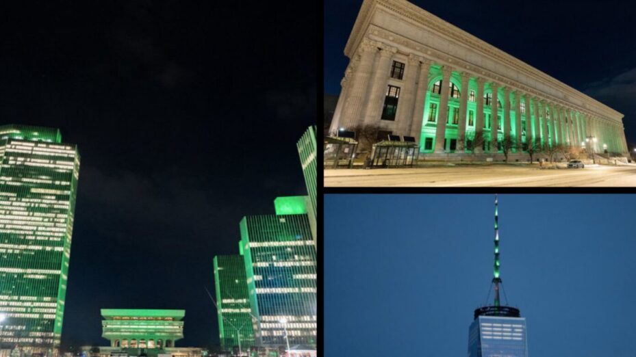 « La résilience, la compassion et les contributions des communautés musulmanes participent à rendre New York plus fort, a officiellement déclaré le gouverneur de l’État, Kathy Hochul. Ce soir, des monuments à travers l’État sont illuminés en vert alors que New York célèbre le Mois du patrimoine des Américains musulmans. » Ce 3 janvier ont ainsi été habillés de lumière verte pas moins de seize édifices hautement symboliques, dont le One World Trade Center, construit à la place des tours jumelles qui avaient été détruites le 11 septembre 2001 par… des terroristes musulmans.