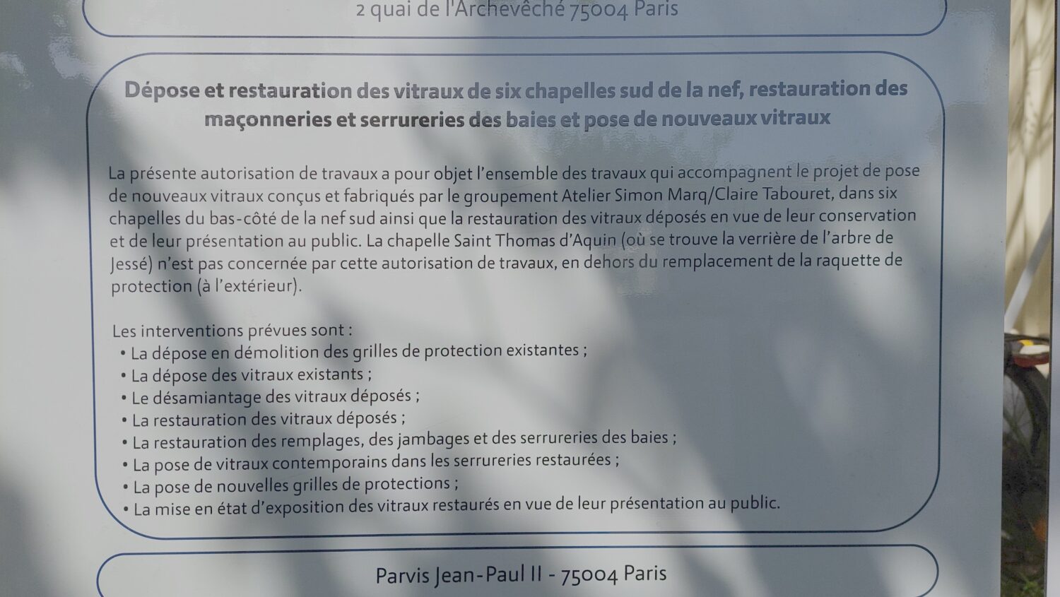 #webtube : Il s’est trouvé deux architectes des Monuments historiques pour faire le sale boulot. Incompétence ou carriérisme ? L’association Sites & Monuments a tiré la sonnette d’alarme : l’autorisation de travaux pour la dépose des vitraux de Viollet-le-Duc et leur remplacement par ceux de Claire Tabouret a été affichée sur les grilles de Notre-Dame, le 20 avril. Cela laisse deux mois pour attaquer cette autorisation devant la Justice.